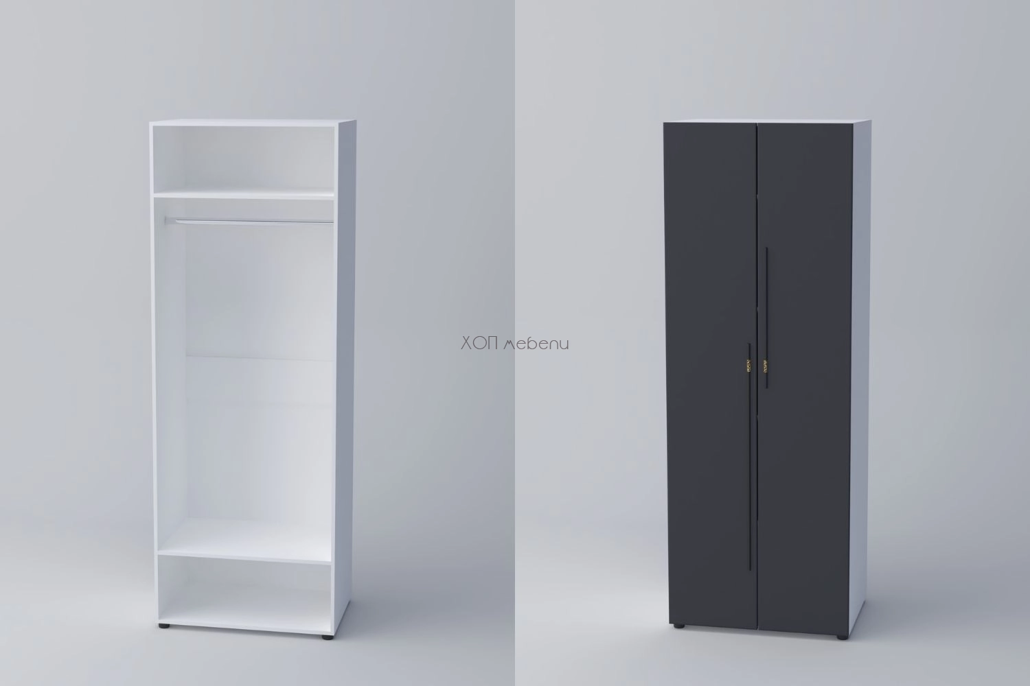 Двукрил гардероб СПЕЙС 1 (h-220) - графит / бяло
