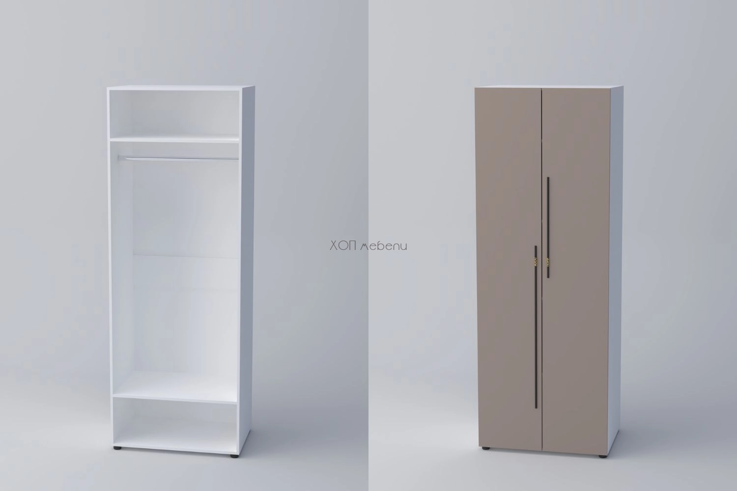 Гардероб с две врати СПЕЙС 1 с височина 220 см. и ширина 80 см. Удобно разпределение и компактни размери. Гардеробът разполага с един лост за закачалки и два рафта.
