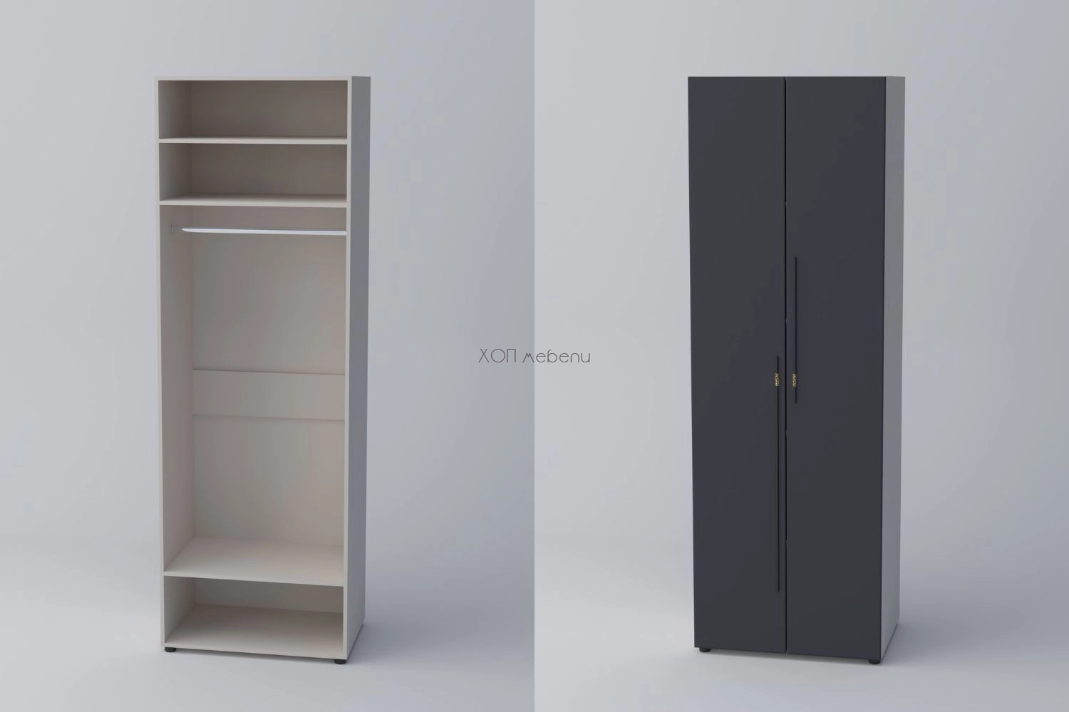 Гардероб с две врати СПЕЙС 1 с височина 240 см. и ширина 80 см. Удобно разпределение и компактни размери. Гардеробът разполага с един лост за закачалки и три рафта.