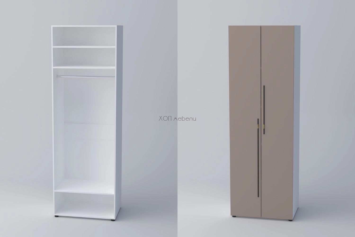 Гардероб с две врати СПЕЙС 1 с височина 240 см. и ширина 80 см. Удобно разпределение и компактни размери. Гардеробът разполага с един лост за закачалки и два рафта.