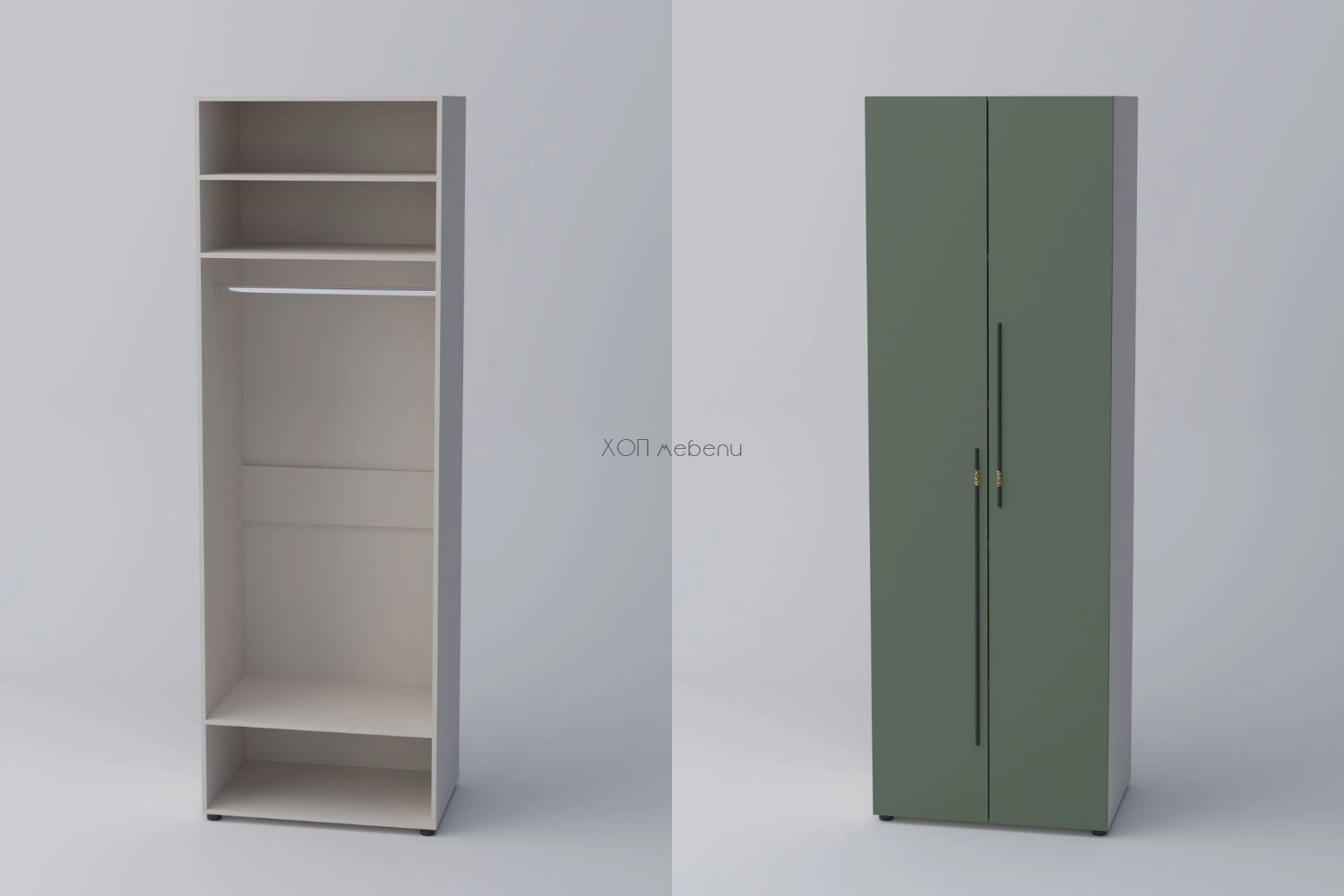 Гардероб с две врати СПЕЙС 1 с височина 240 см. и ширина 80 см. Удобно разпределение и компактни размери. Гардеробът разполага с един лост за закачалки и три рафта.