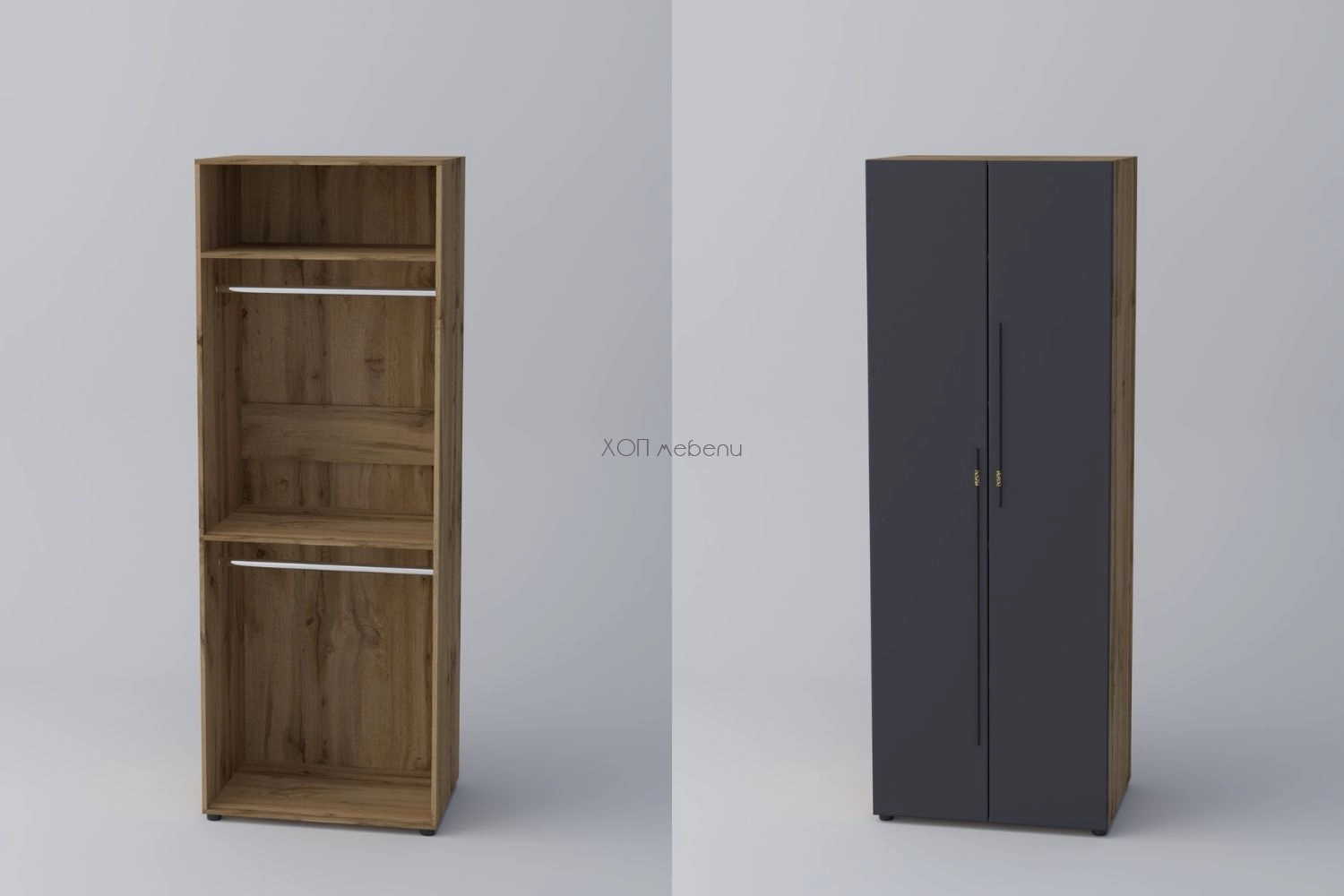 Двукрил гардероб СПЕЙС 2 (h-220) - графит / апалачи