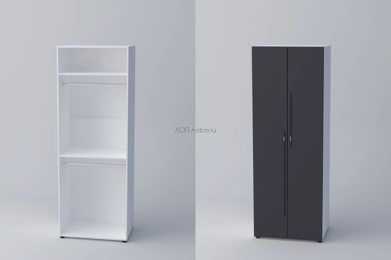 Гардероб с две врати СПЕЙС 2 с височина 220 см. и ширина 80 см. Удобно разпределение и компактни размери. Гардеробът разполага с два лоста за закачалки и два рафта.