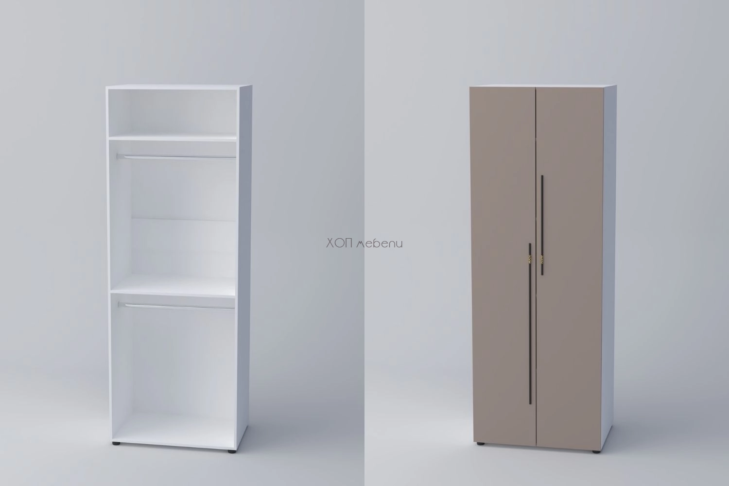 Гардероб с две врати СПЕЙС 2 с височина 220 см. и ширина 80 см. Удобно разпределение и компактни размери. Гардеробът разполага с два лоста за закачалки и два рафта.