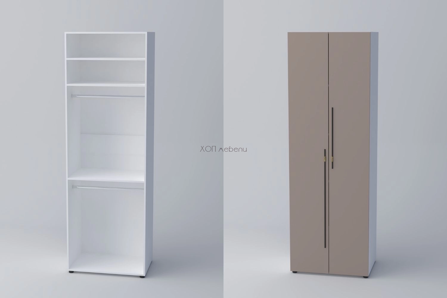 Гардероб с две врати СПЕЙС 2 с височина 240 см. и ширина 80 см. Удобно разпределение и компактни размери. Гардеробът разполага с два лоста за закачалки и три рафта.