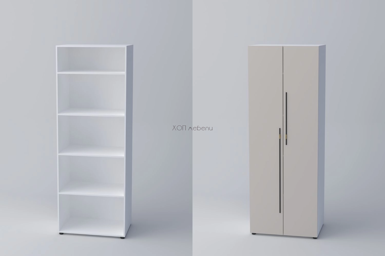 Гардероб СПЕЙС 3 с височина 220 см. и ширина 80 см. Удобно разпределение и компактни размери. Гардеробът разполага с четири рафта и две врати.