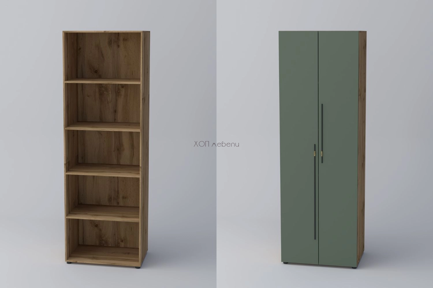 Гардероб СПЕЙС 3 (h-240) - зелено / дъб апалачи