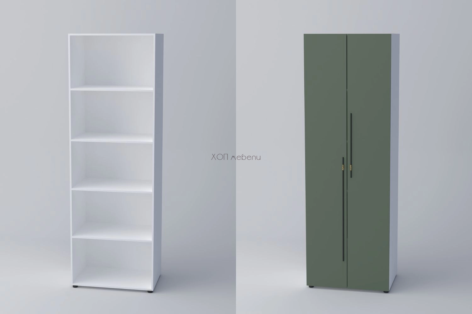 Двукрилен гардероб СПЕЙС 3 с височина 240 см. и ширина 80 см. Удобно разпределение и компактни размери. Гардеробът разполага с четири рафта.