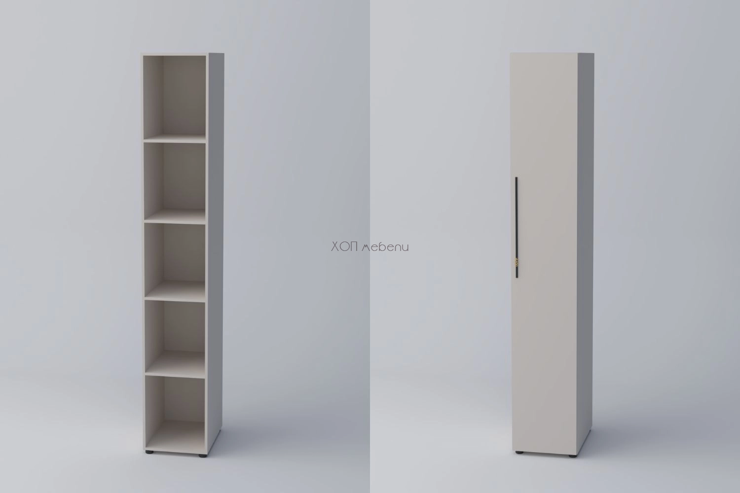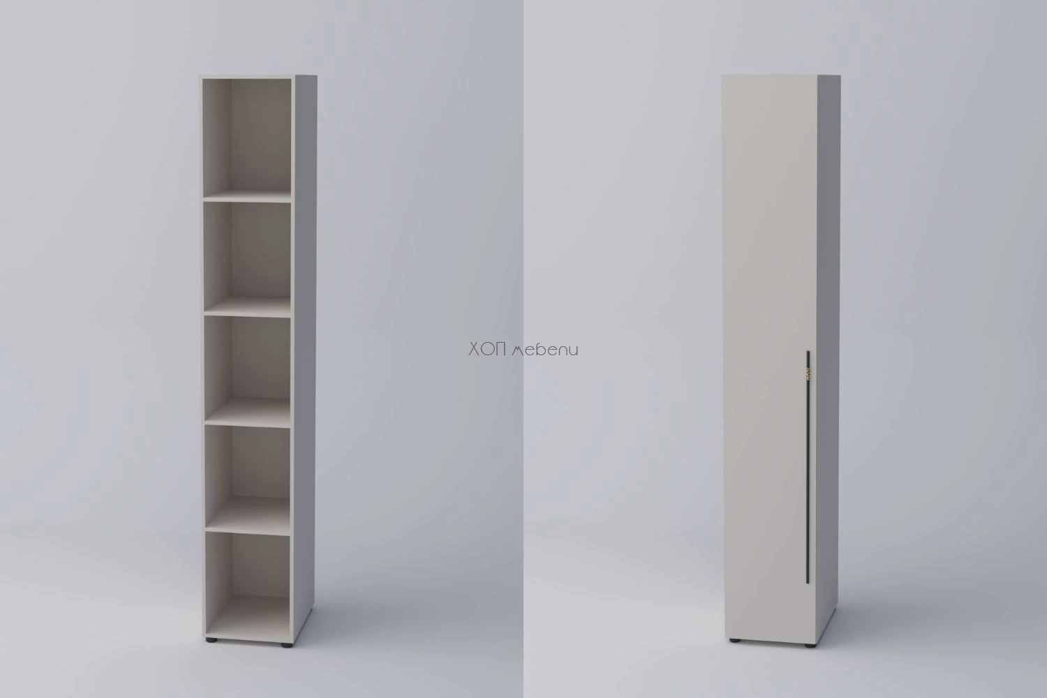 Еднокрилен гардероб СПЕЙС 3 с височина 240 см. и ширина 40 см. Удобно разпределение и компактни размери. Гардеробът разполага с четири рафта.