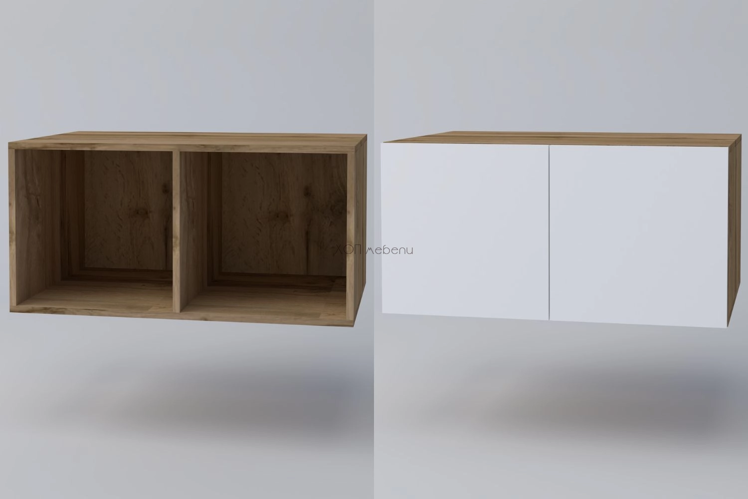 Надстройка за гардероби СПЕЙС с лице в бяло и корпус дъб апалачи. С две врати и две отделения, ширина 80 см.