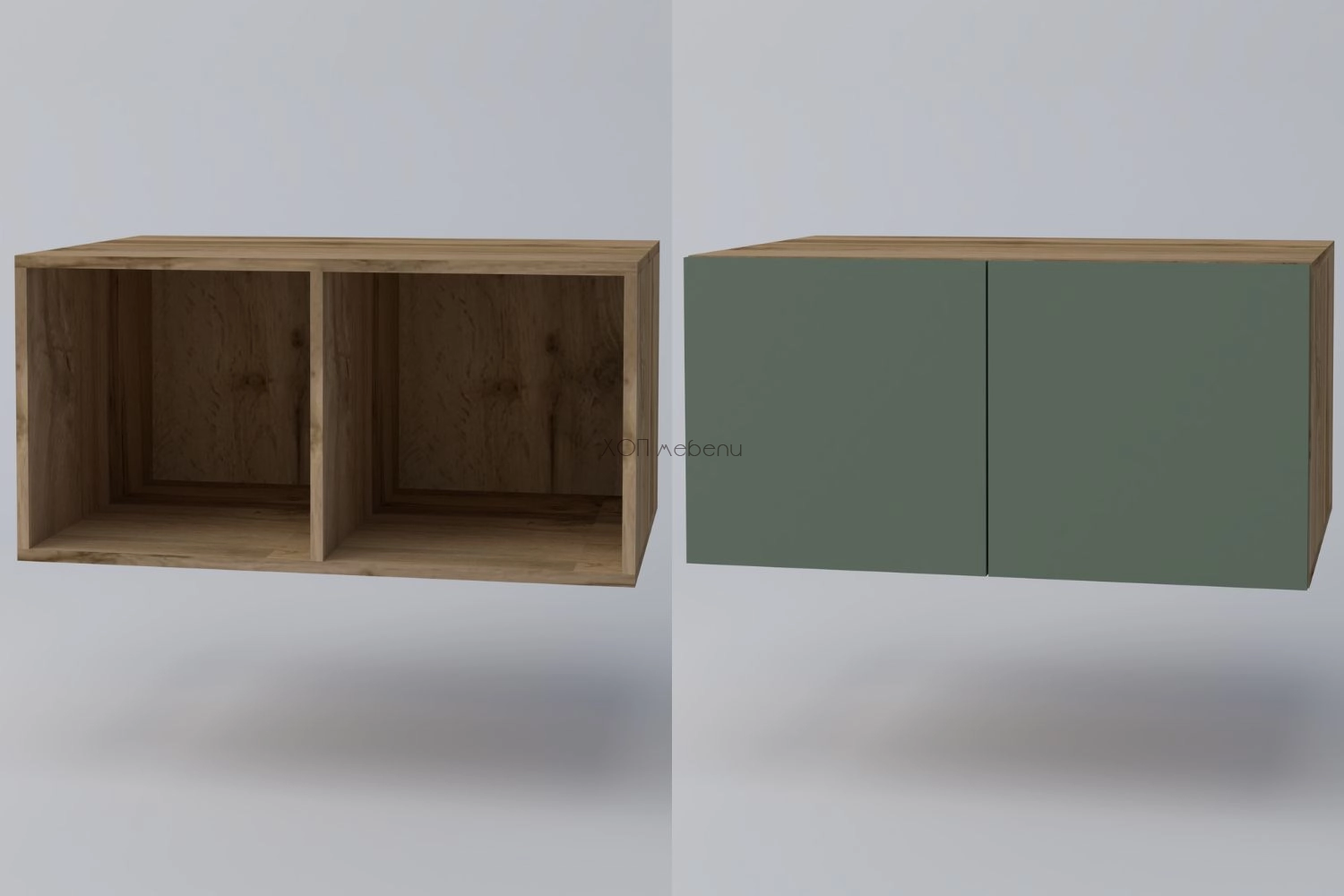 Надстройка за гардероби СПЕЙС с лице в зелено и корпус дъб апалачи. С две врати и две отделения, ширина 80 см.