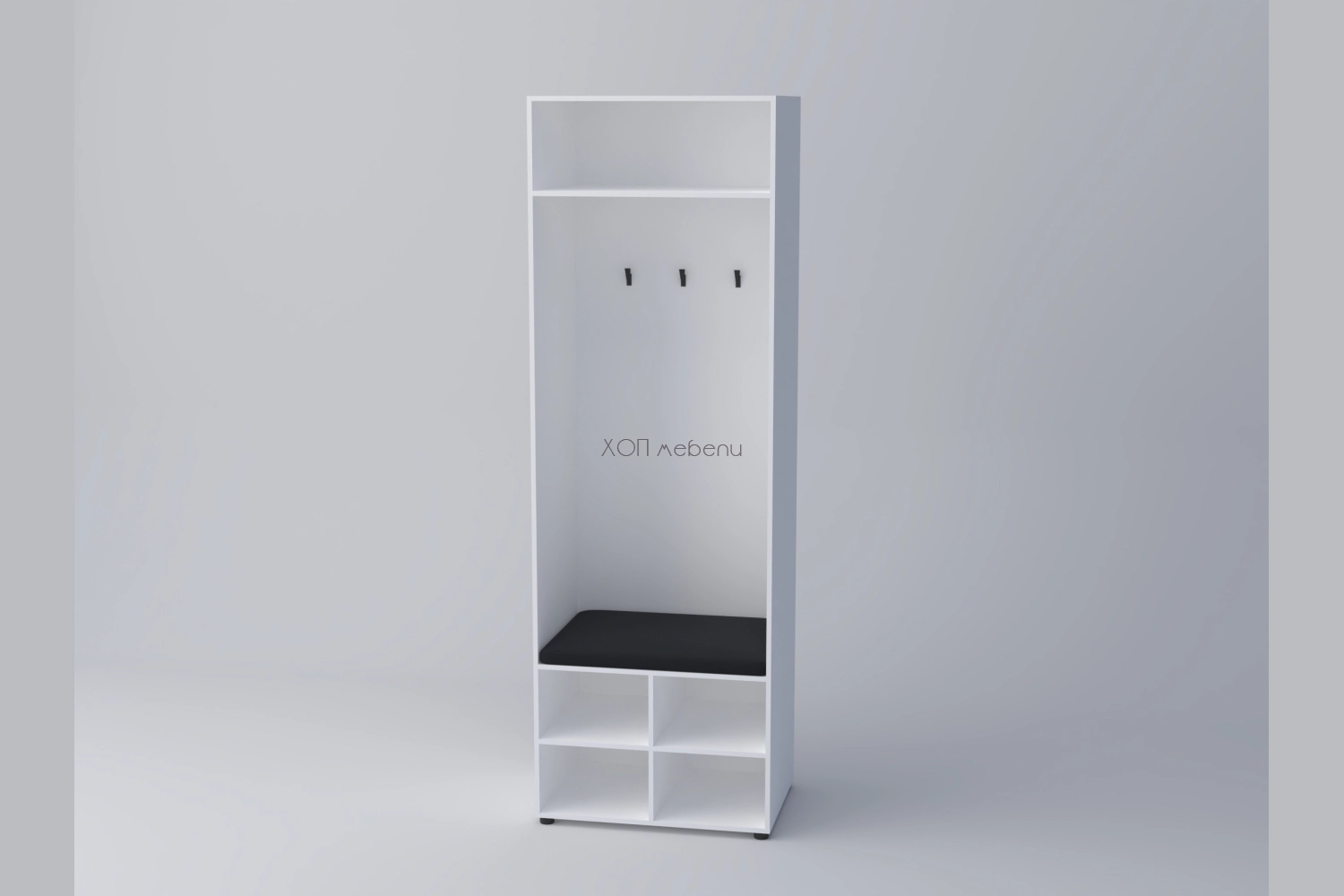 Портманто СПЕЙС с височина 240 см. и ширина 80 см. Удобно разпределение със закачалки, рафт, възглавница и четири ниши за обувки.
