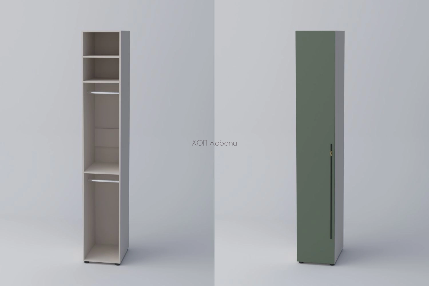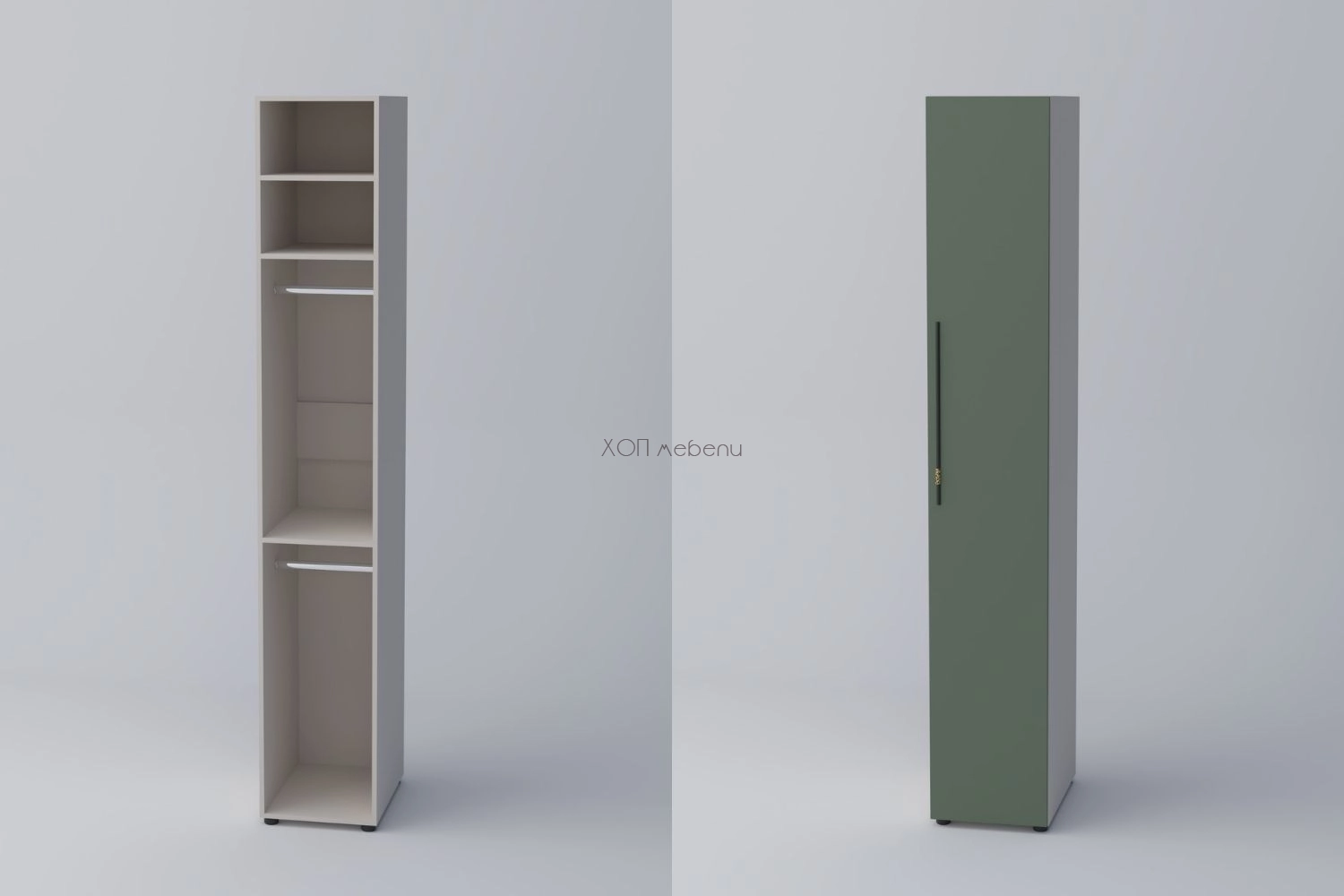 Еднокрилен гардероб СПЕЙС 2 с височина 240 см. и ширина 40 см. Удобно разпределение и компактни размери. Гардеробът разполага с два лоста за закачалки и три рафта.