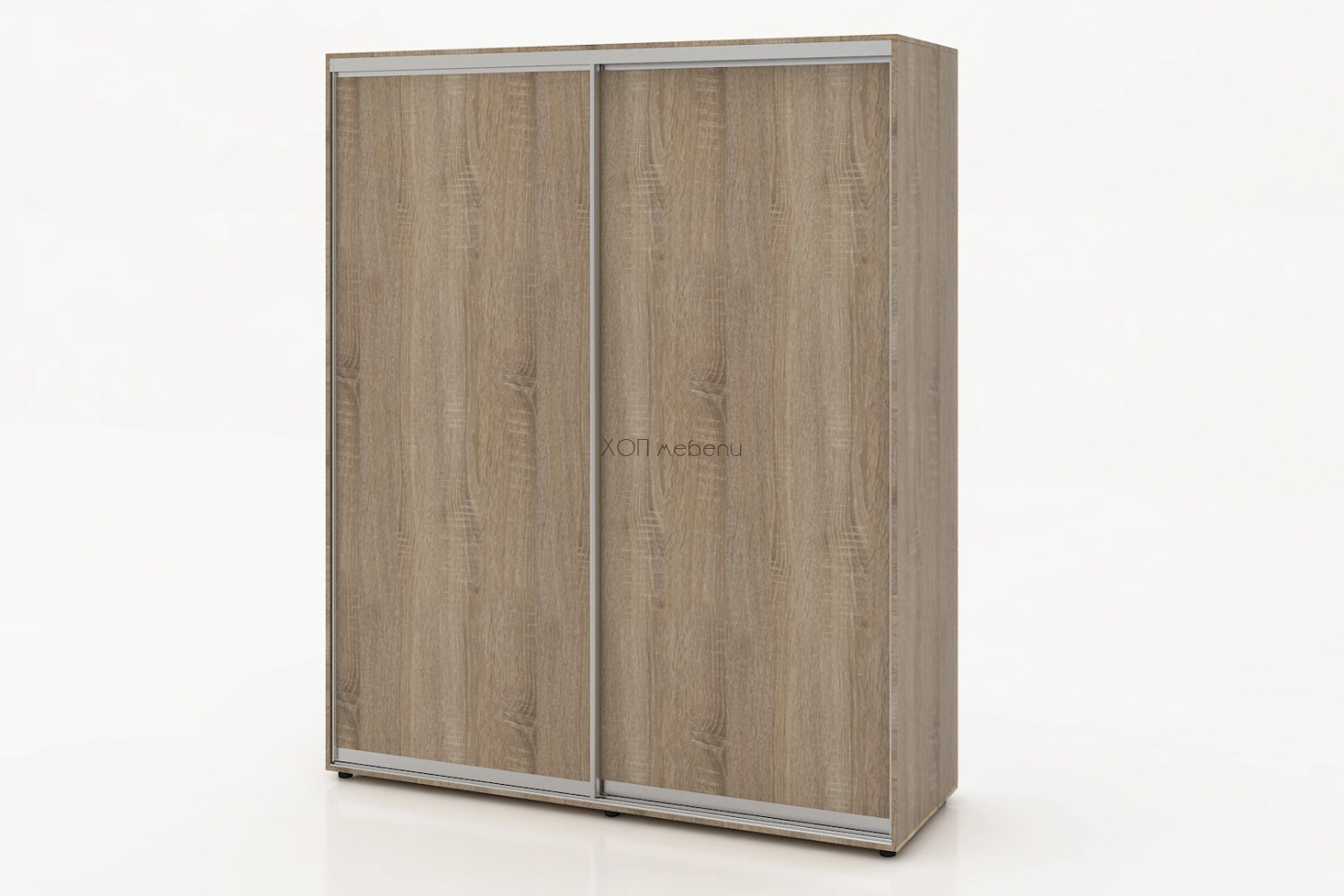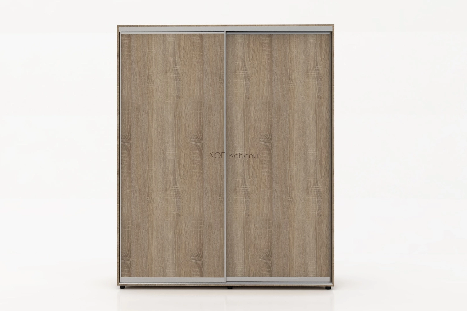Тази конфигурация на гардероб Алфа е в цвят сонома с две плътни врати.