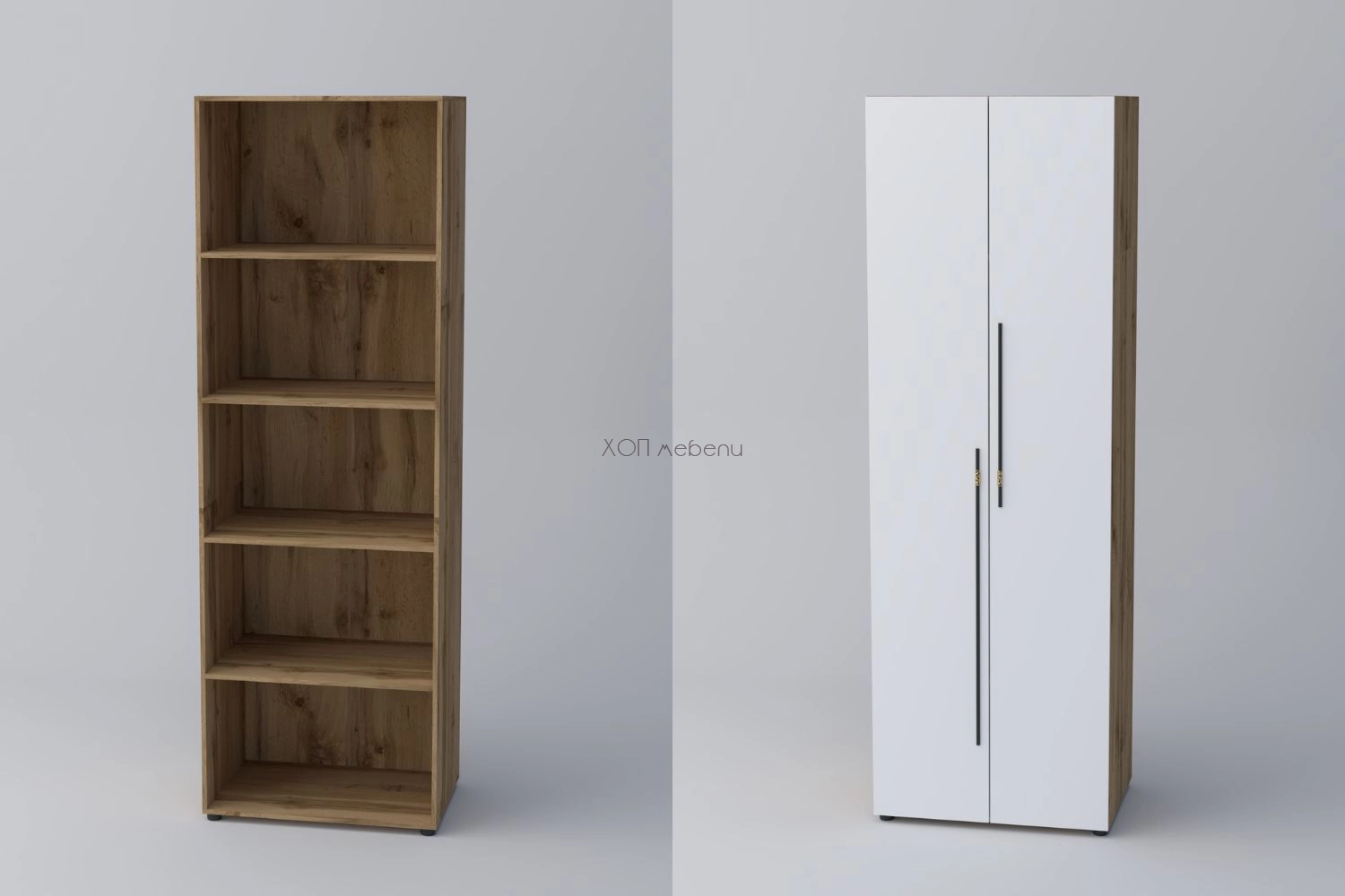 Двукрилен гардероб СПЕЙС 3 с височина 240 см. и ширина 80 см. Удобно разпределение и компактни размери. Гардеробът разполага с четири рафта.