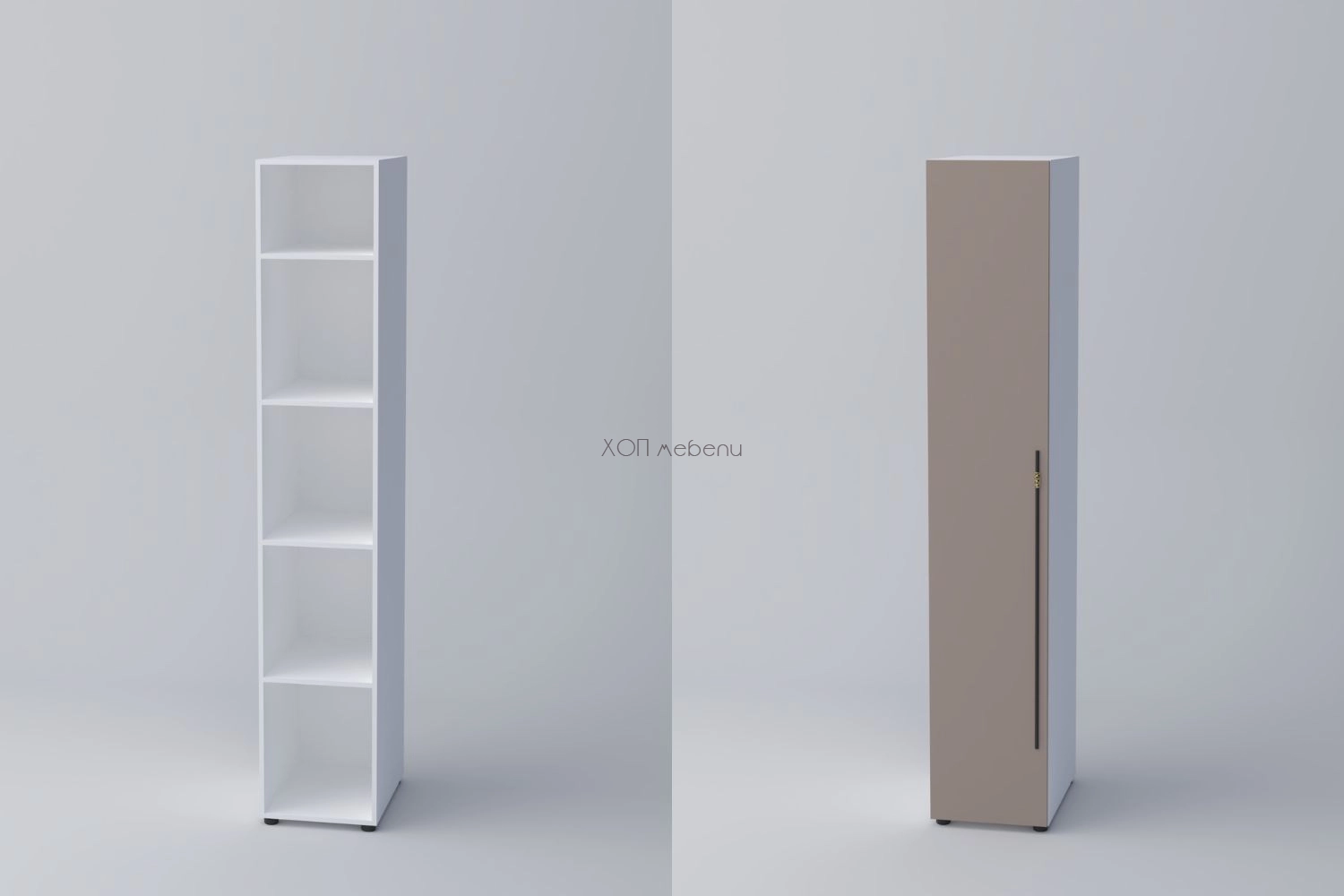 Еднокрилен гардероб СПЕЙС 3 с височина 220 см. и ширина 40 см. Удобно разпределение и компактни размери. Гардеробът разполага с четири рафта.