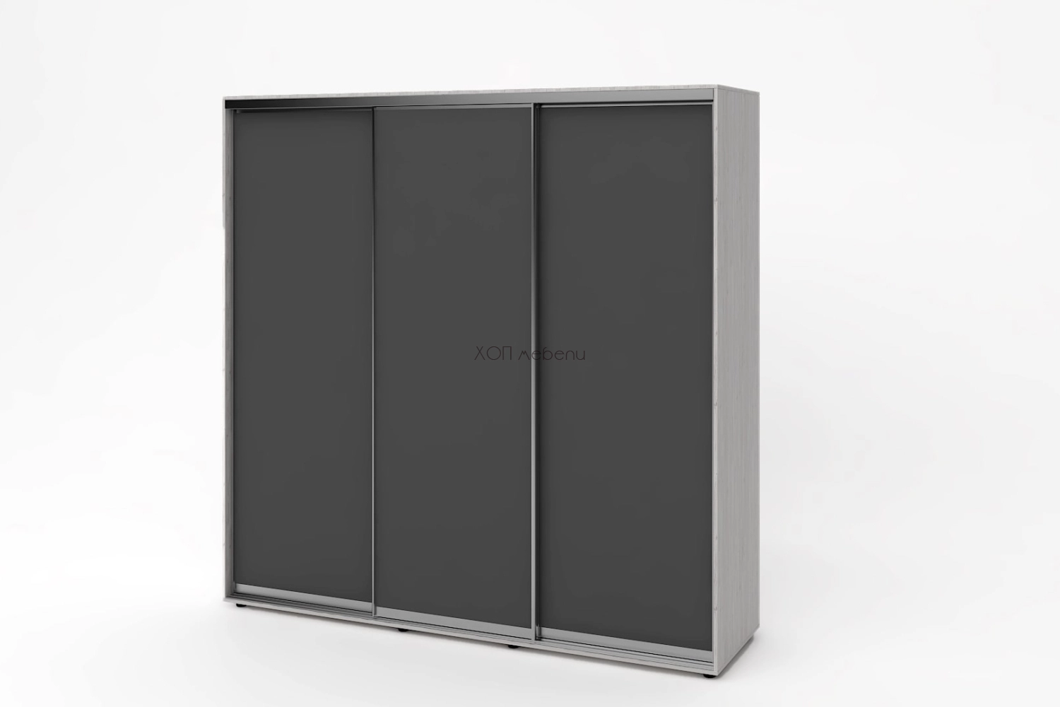 Тази конфигурация на гардероб Алфа е с корпус в артууд и с три плътни врати в графит.
