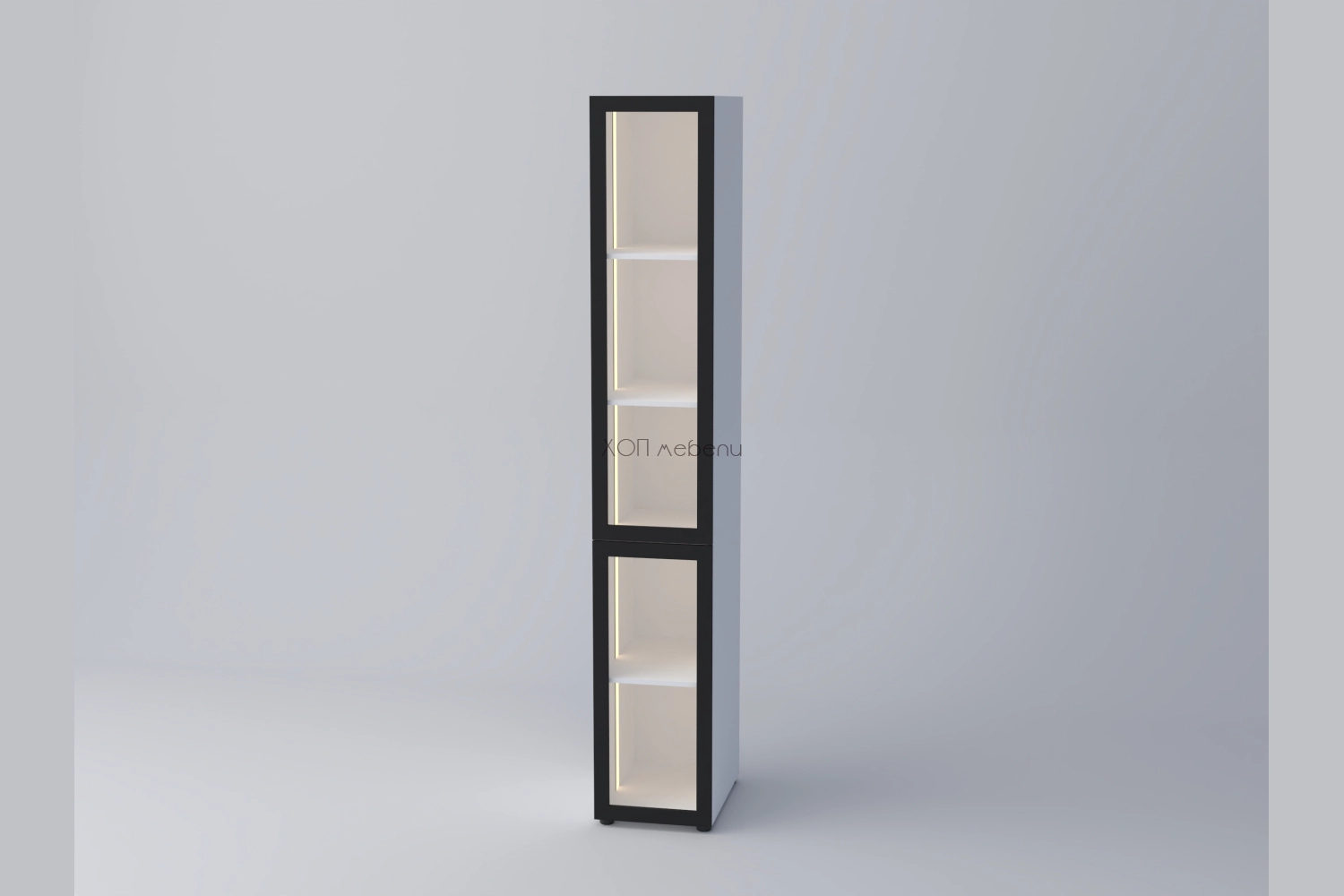 Модул с витрина СПЕЙС, височина 240 см. Корпус в класически бял цвят и четири рафта.