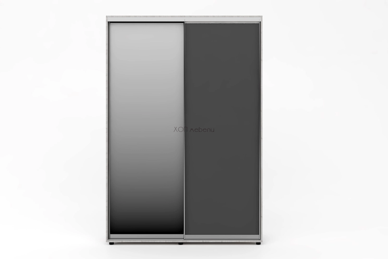 Тази конфигурация на гардероб Алфа е в цвят артууд и графит, с една плътна и една огледална врата.
