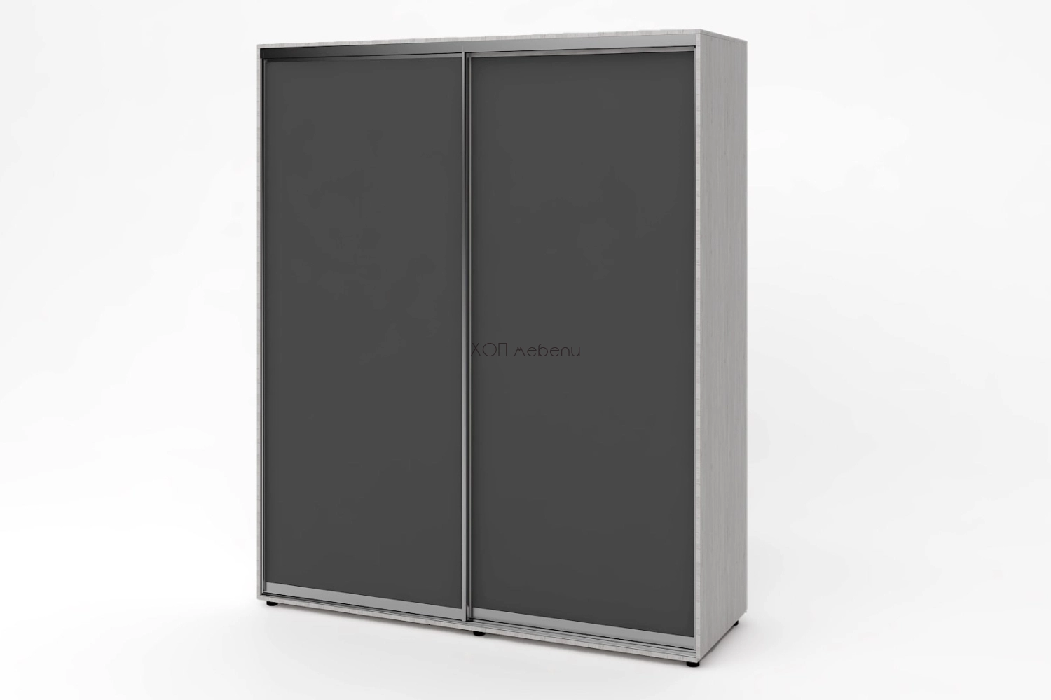 Тази конфигурация на гардероб Алфа е с две плътни врати. С корпус в артууд и лице в графит.