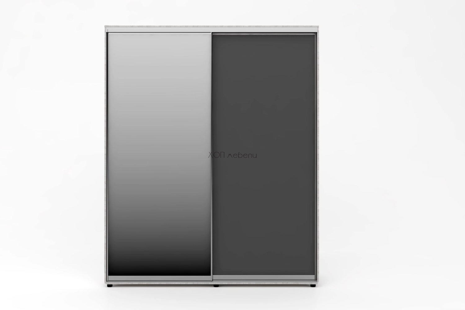 Тази конфигурация на гардероб Алфа е в комбинация артууд и графит, с една плътна и една огледална врата.