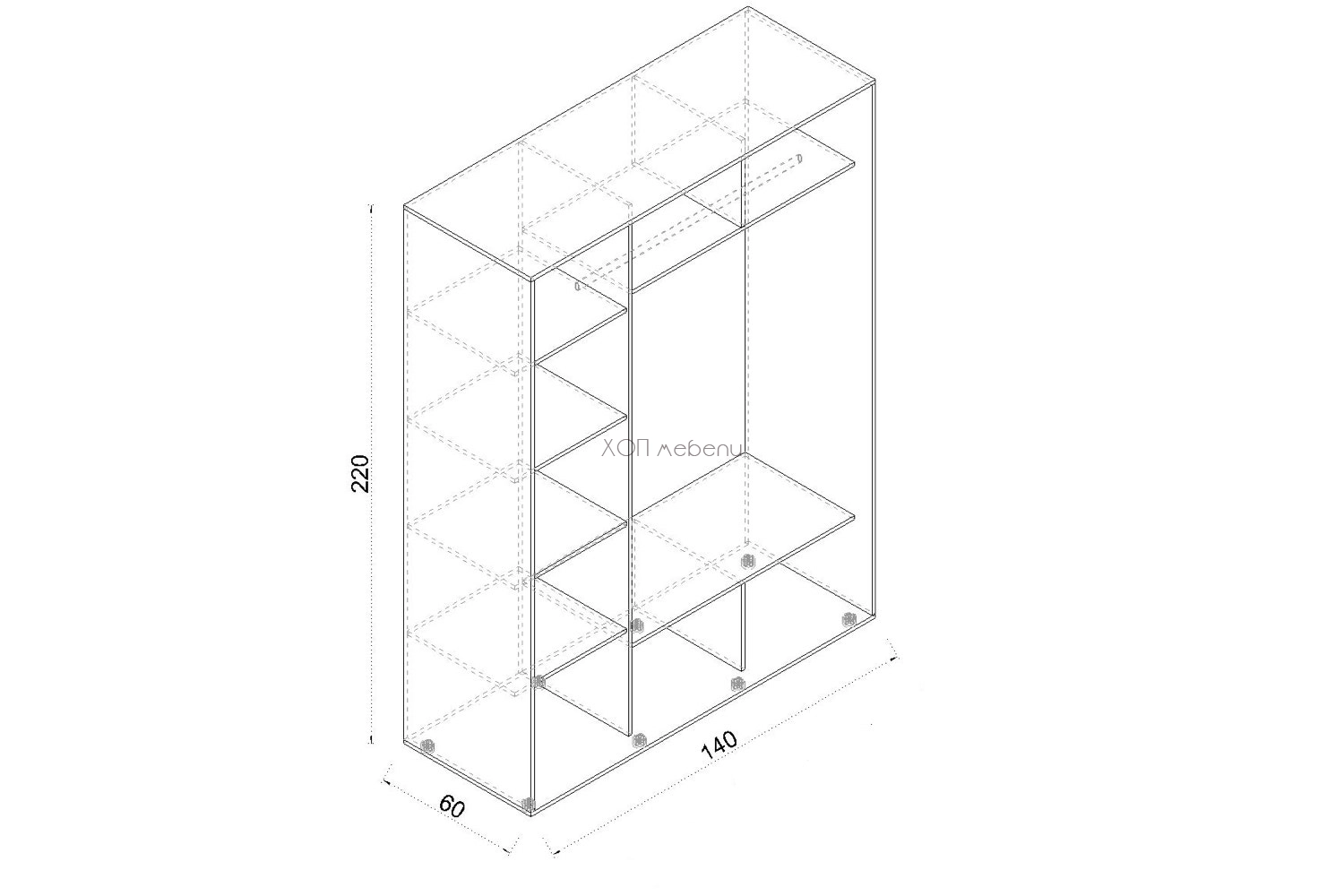 - височина 220 см / дълбочина 60 см / дължина 140см