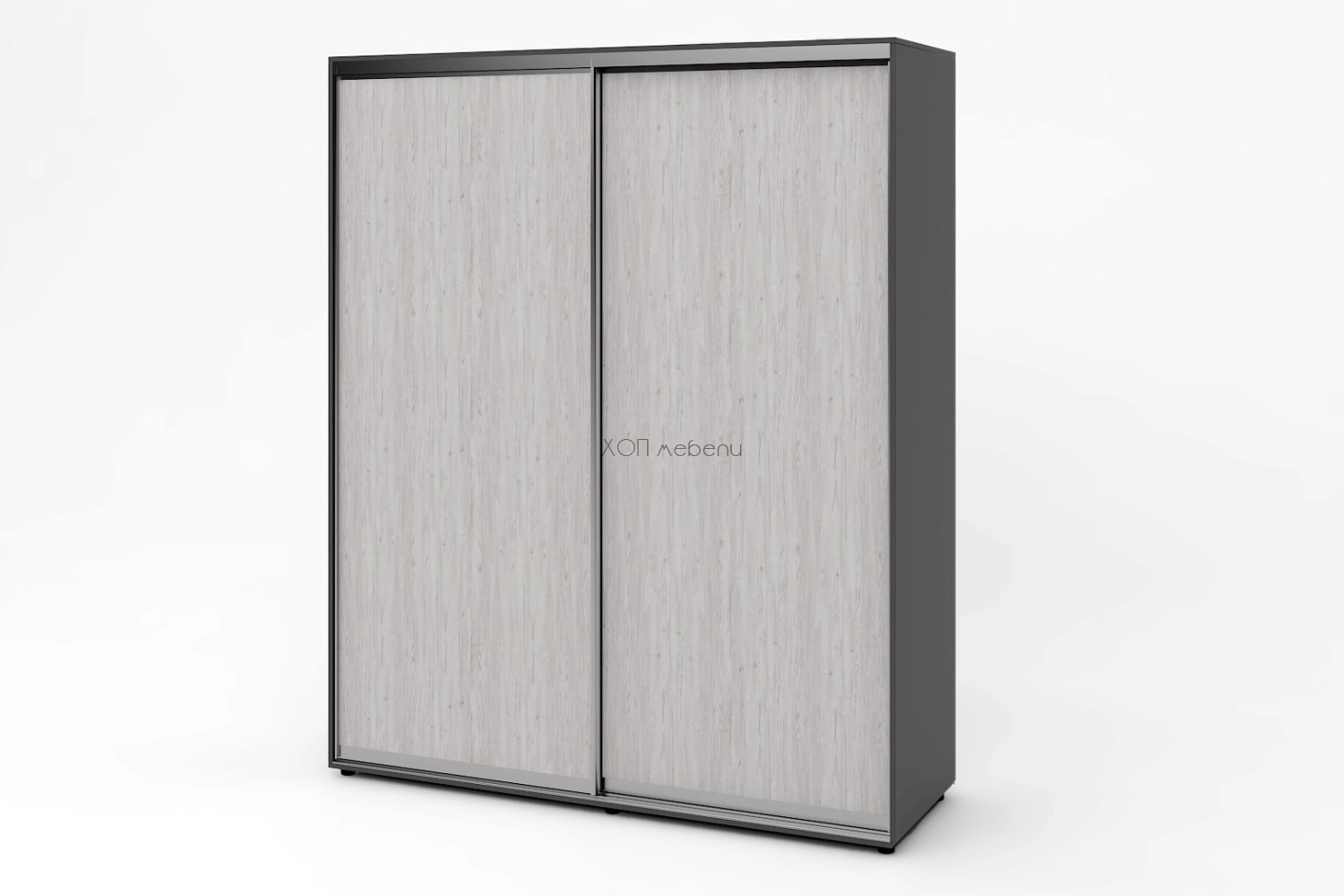 Тази конфигурация на гардероб Алфа е с лице в артууд и корпус в графит, с две плътни врати.