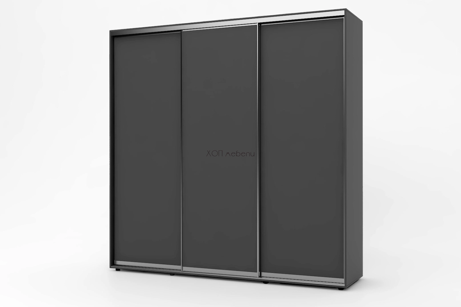 Тази конфигурация на гардероб Алфа е с корпус в сив цвят графит и с три плътни врати.