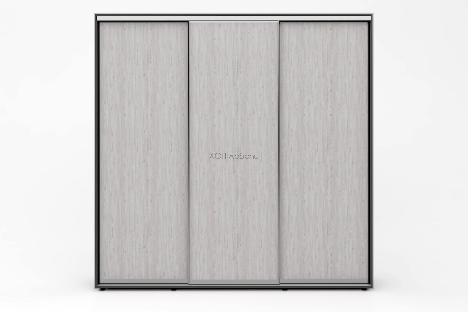 Тази конфигурация на гардероб Алфа е с корпус в сив цвят графит и с три плътни врати в артууд.