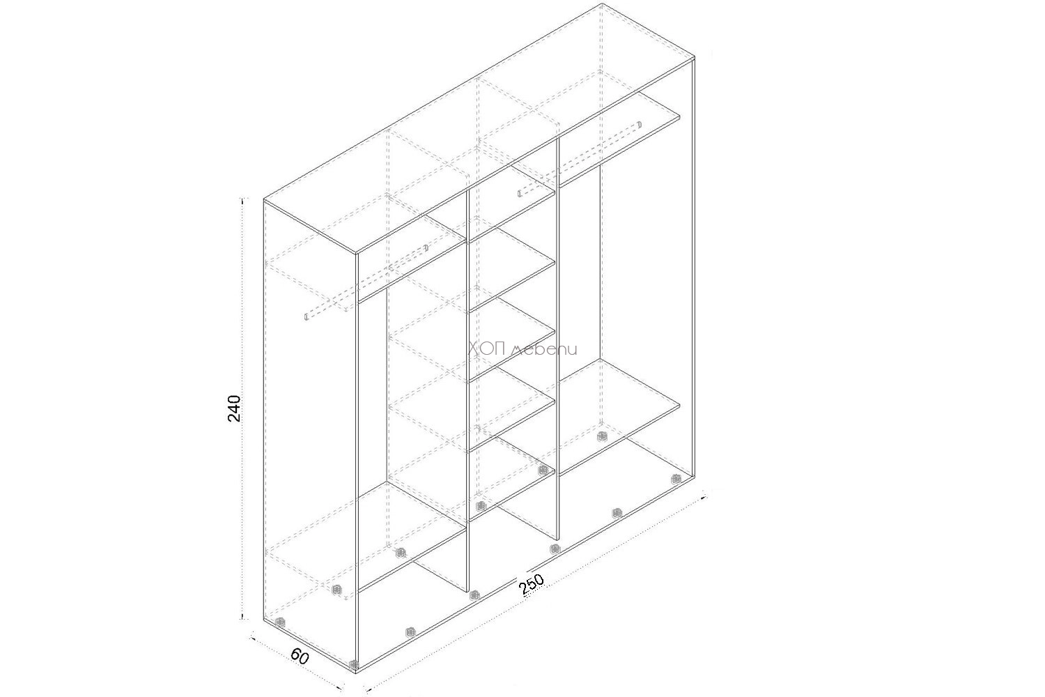 - височина 240 см / дълбочина 60 см / дължина 250 см