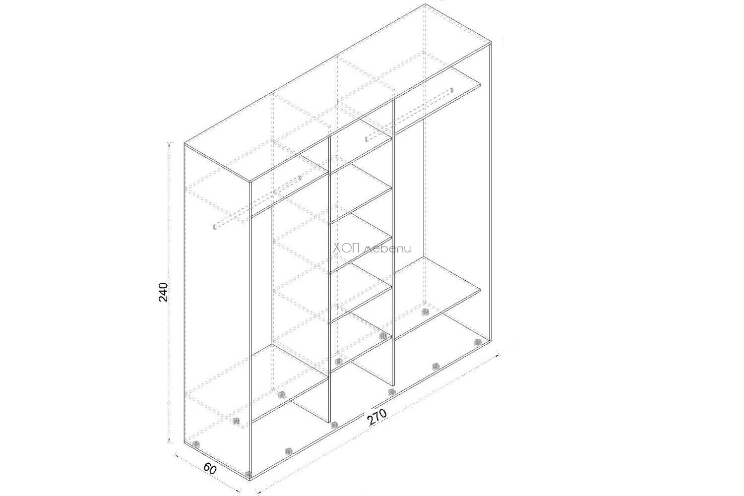 - височина 240 см / дълбочина 60 см / дължина 270 см