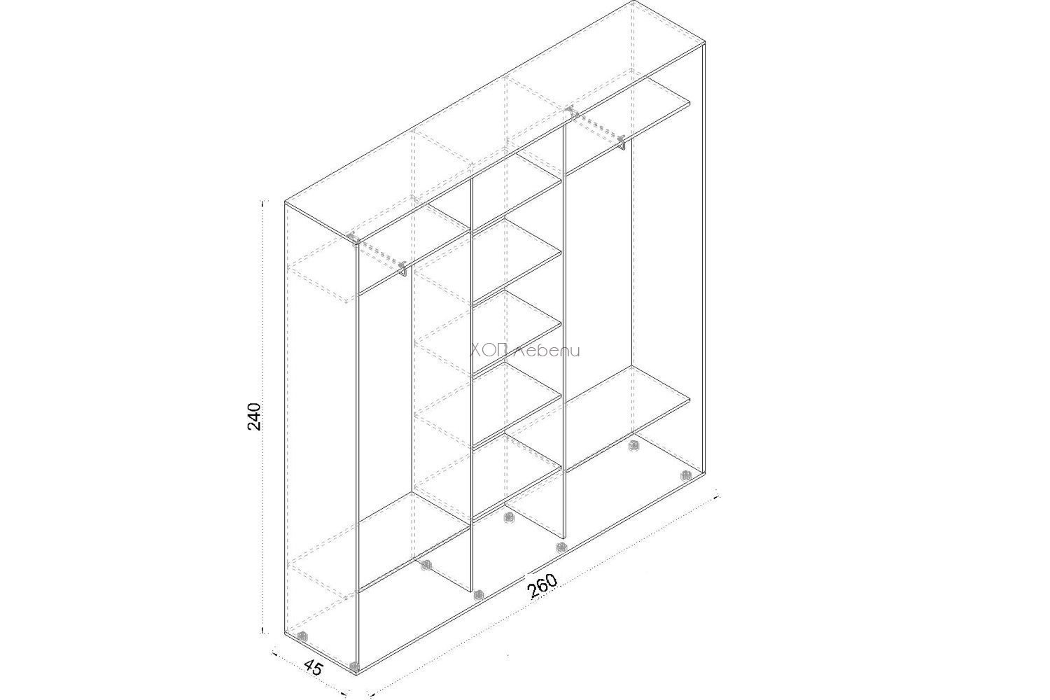 - височина 240 см / дълбочина 45 см / дължина 260 см