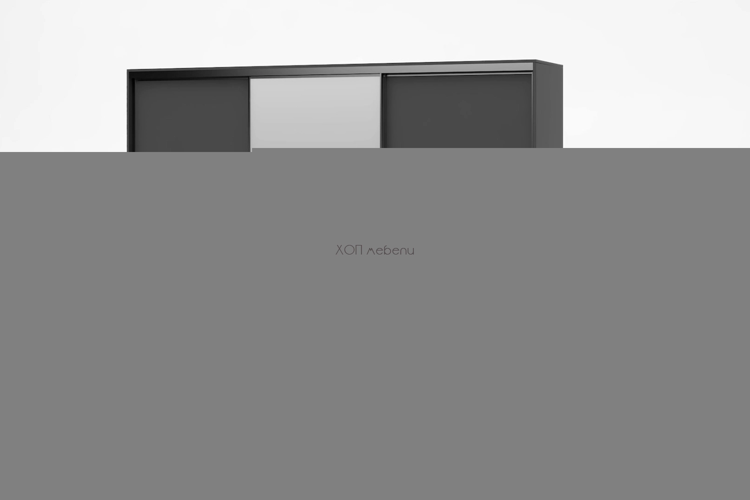 Тази конфигурация на гардероб Алфа е в цвят графит с две плътни и една огледална врата.