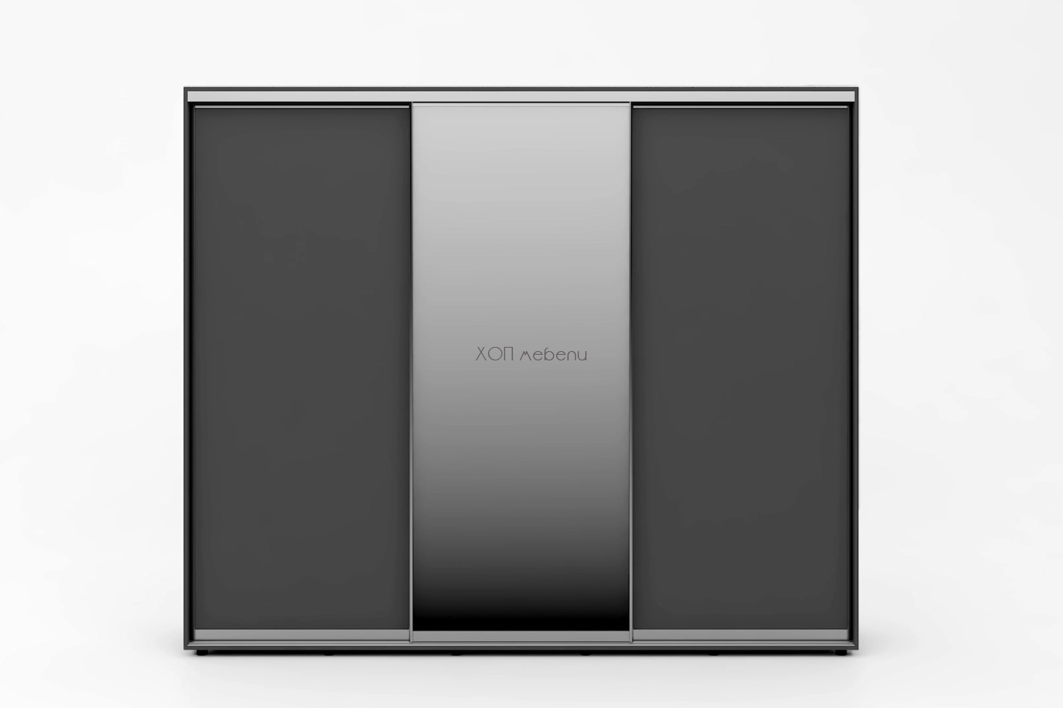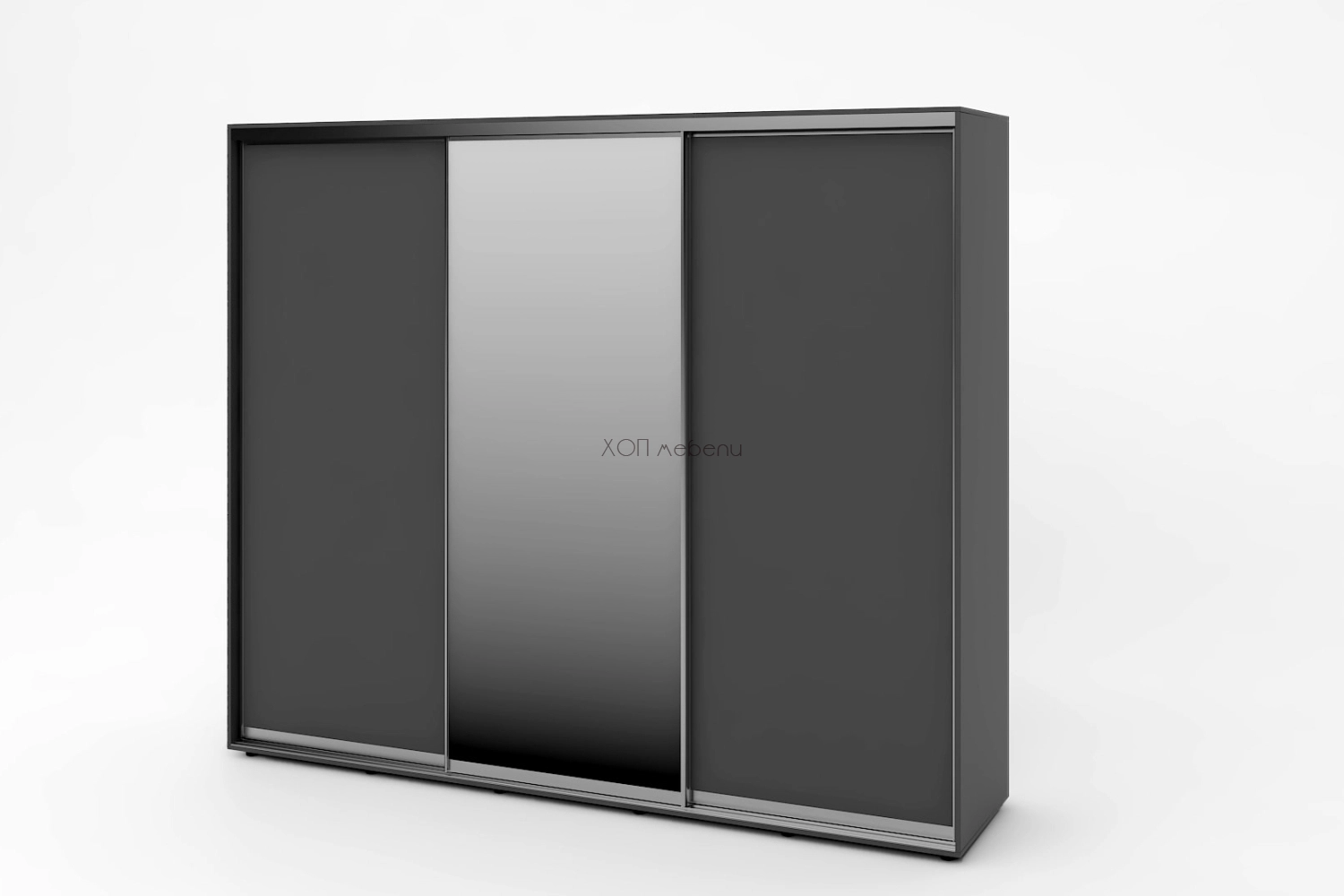 Тази конфигурация на гардероб Алфа е в цвят графит с две плътни и една огледална врата.