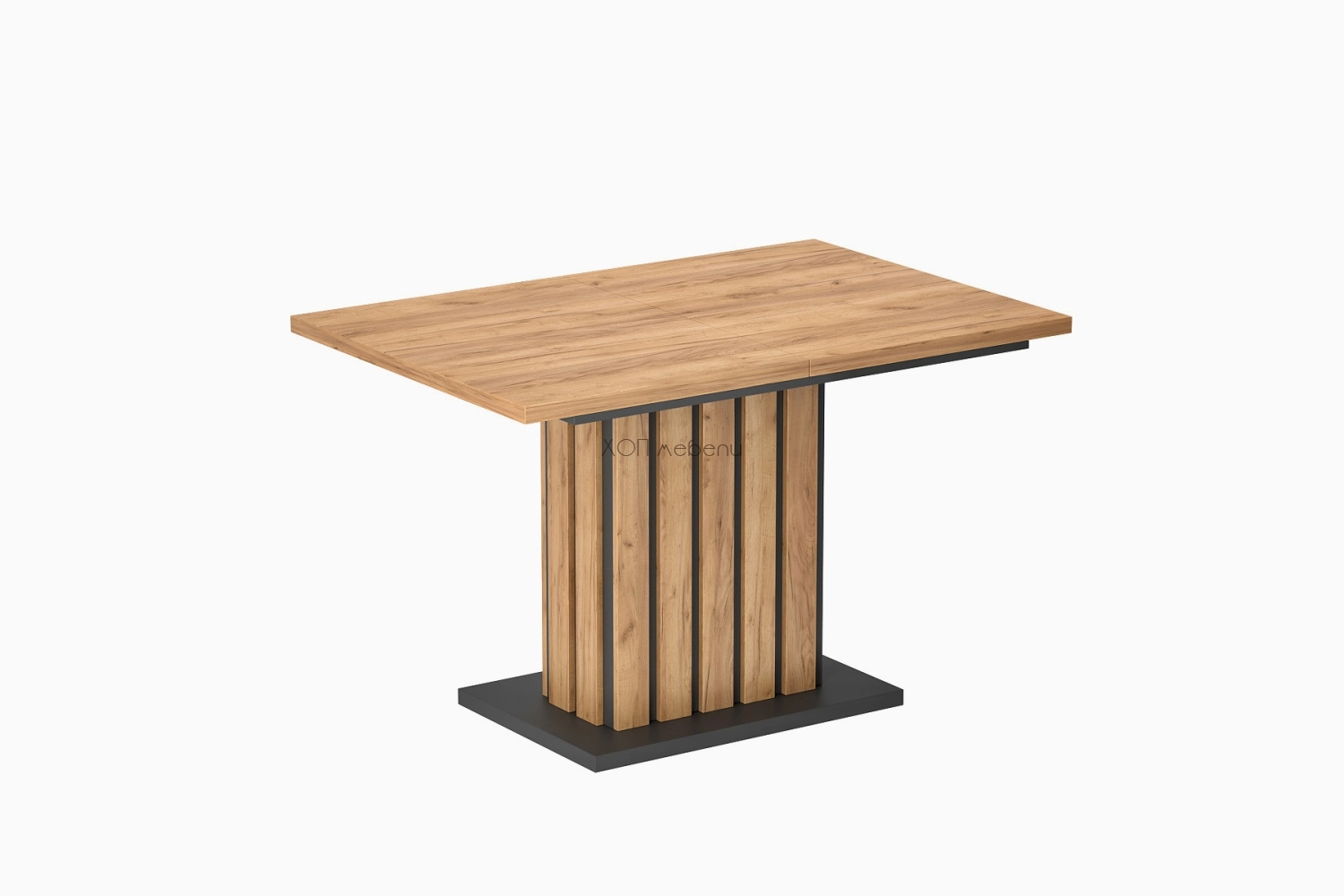 Разтегателна трапезна маса Оксфорд е чудесна за трапезарията или комбинираното помещение на трапезария и всекидневна. В комбинация от топъл дървесен цвят дъб златен и модерен сив цвят графит.