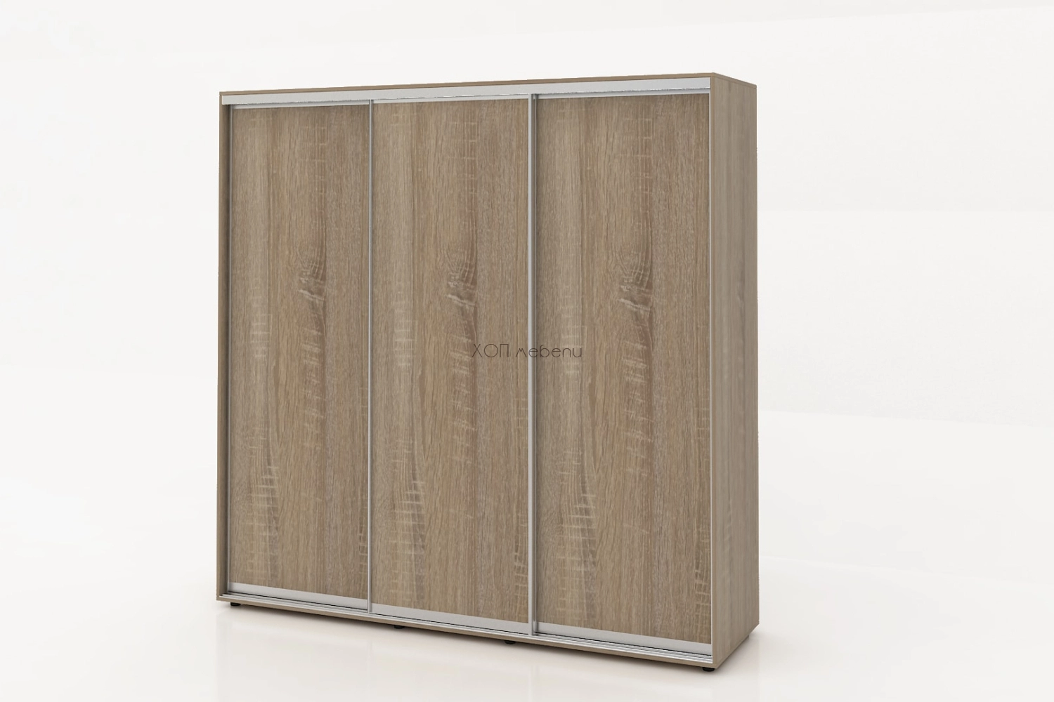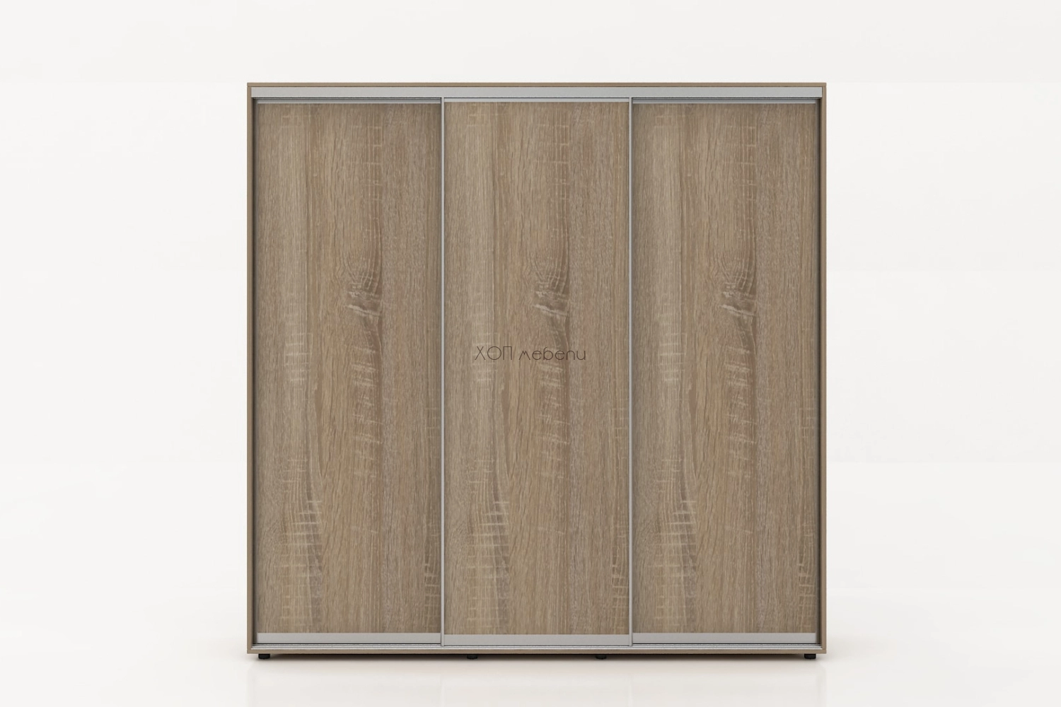 Тази конфигурация на гардероб Алфа е в цвят сонома с три плътни врати.