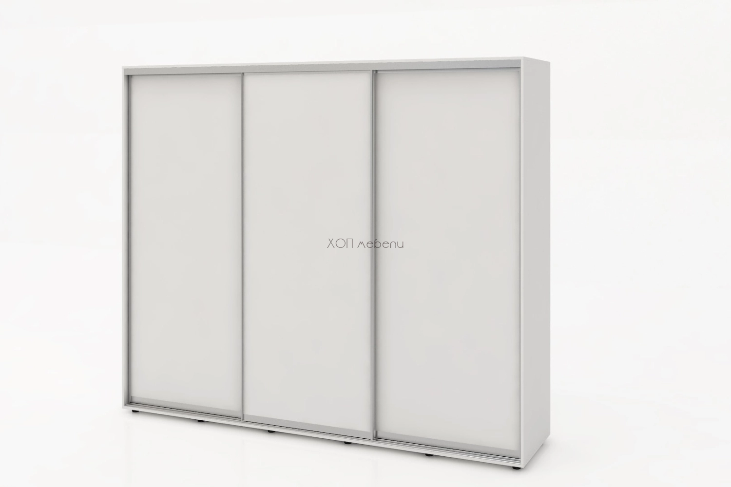 Тази конфигурация на гардероб Алфа е в цвят бяло с три плътни врати.