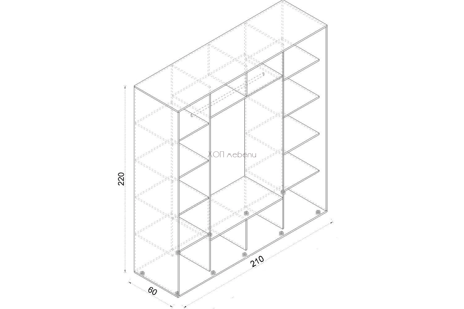 - височина 220 см / дълбочина 60 см / дължина 210 см