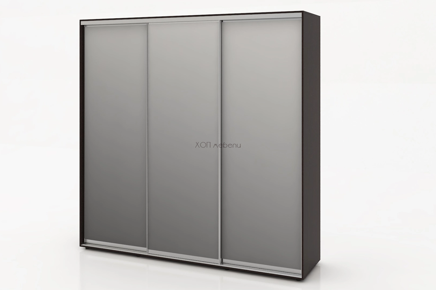 Тази конфигурация на гардероб Алфа е в цвят венге с три огледални врати