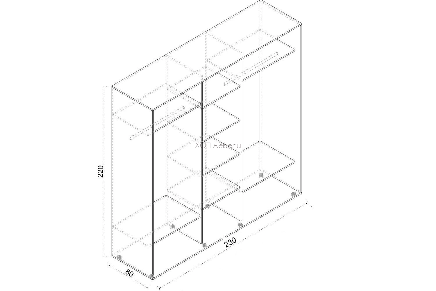 - височина 220 см / дълбочина 60 см / дължина 230 см