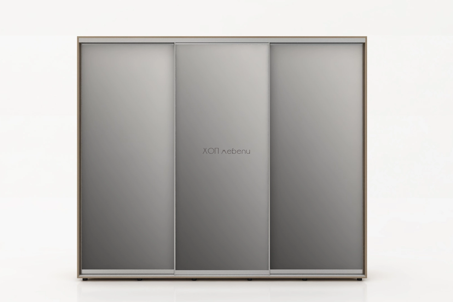Тази конфигурация на гардероб Алфа е в цвят сонома с три огледални врати