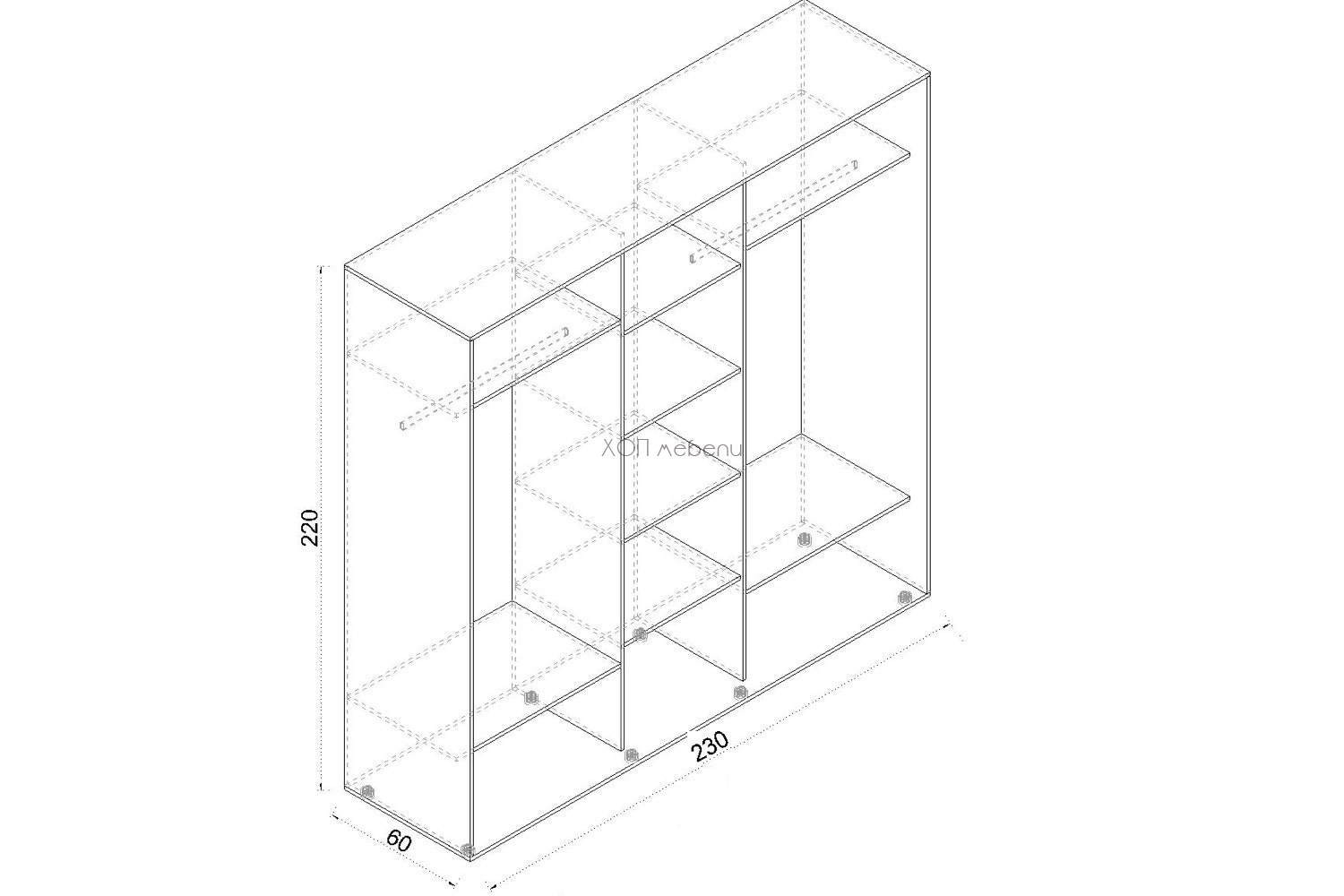 - височина 220 см / дълбочина 60 см / дължина 230 см