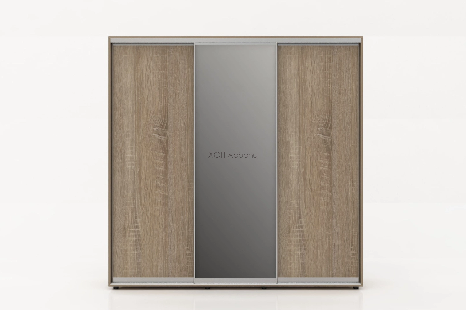 Тази конфигурация на гардероб Алфа е в цвят сонома с две плътни и една огледална врата.