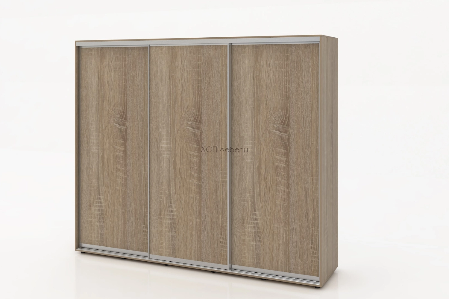 Тази конфигурация на гардероб Алфа е в цвят сонома с три плътни врати.