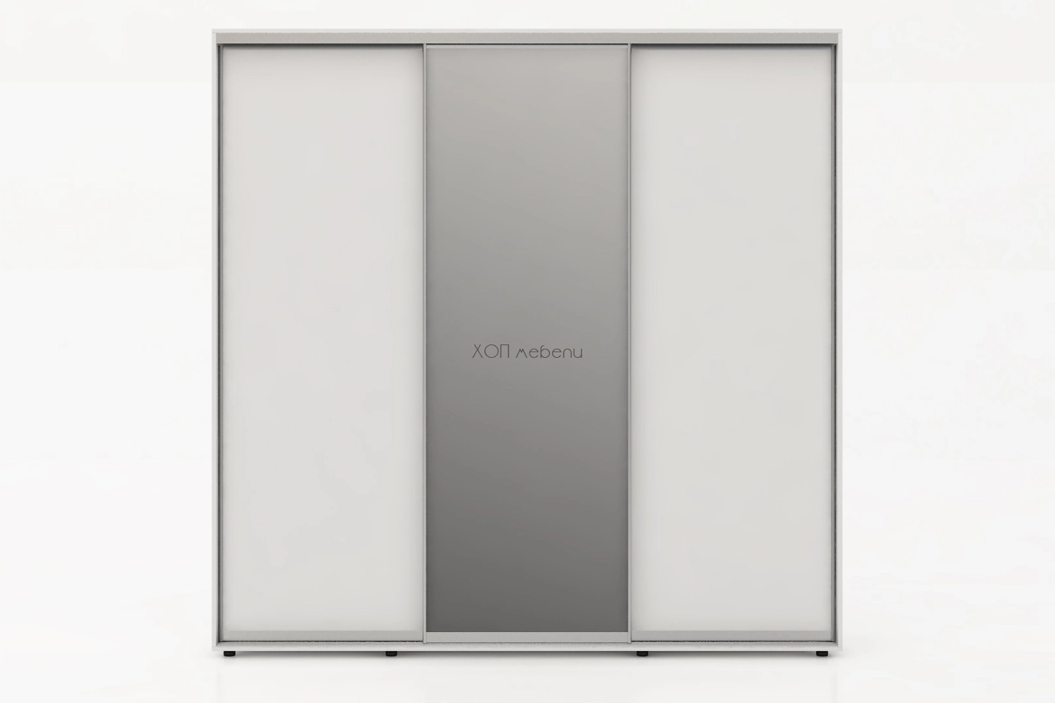 Тази конфигурация на гардероб Алфа е в цвят бяло с две плътни и една огледална врата.