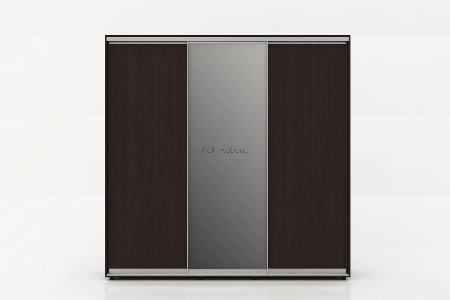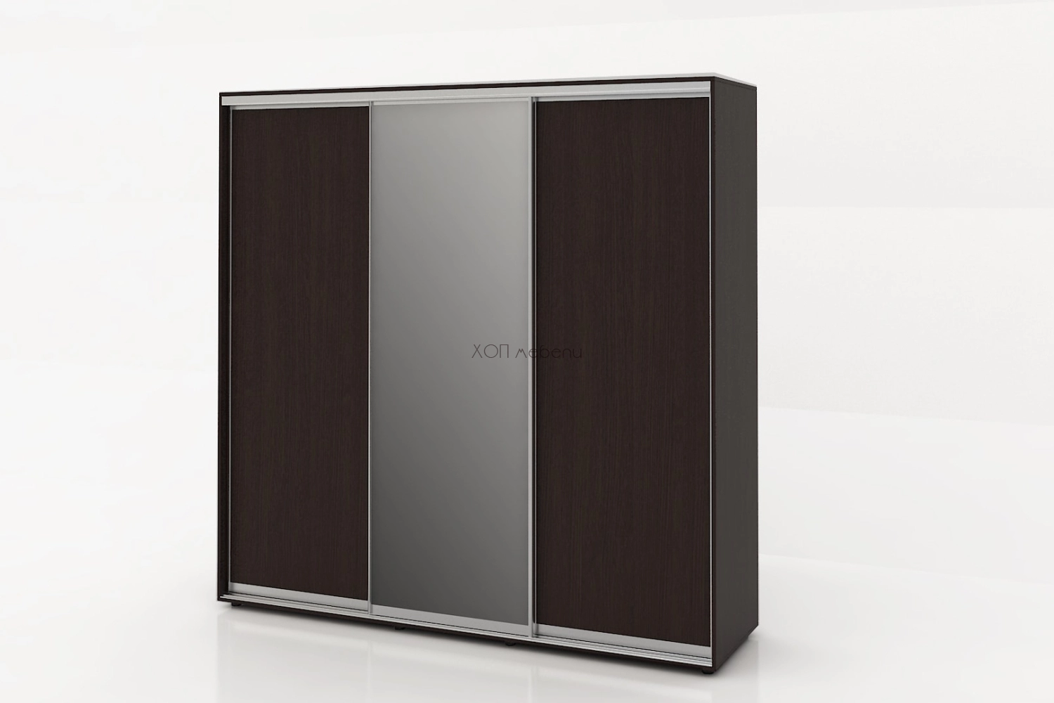 Тази конфигурация на гардероб Алфа е в цвят венге с две плътни и една огледална врата.