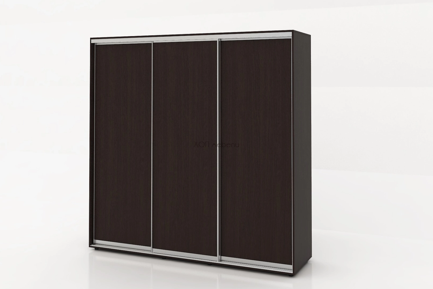 Тази конфигурация на гардероб Алфа е в цвят венге с три плътни врати.