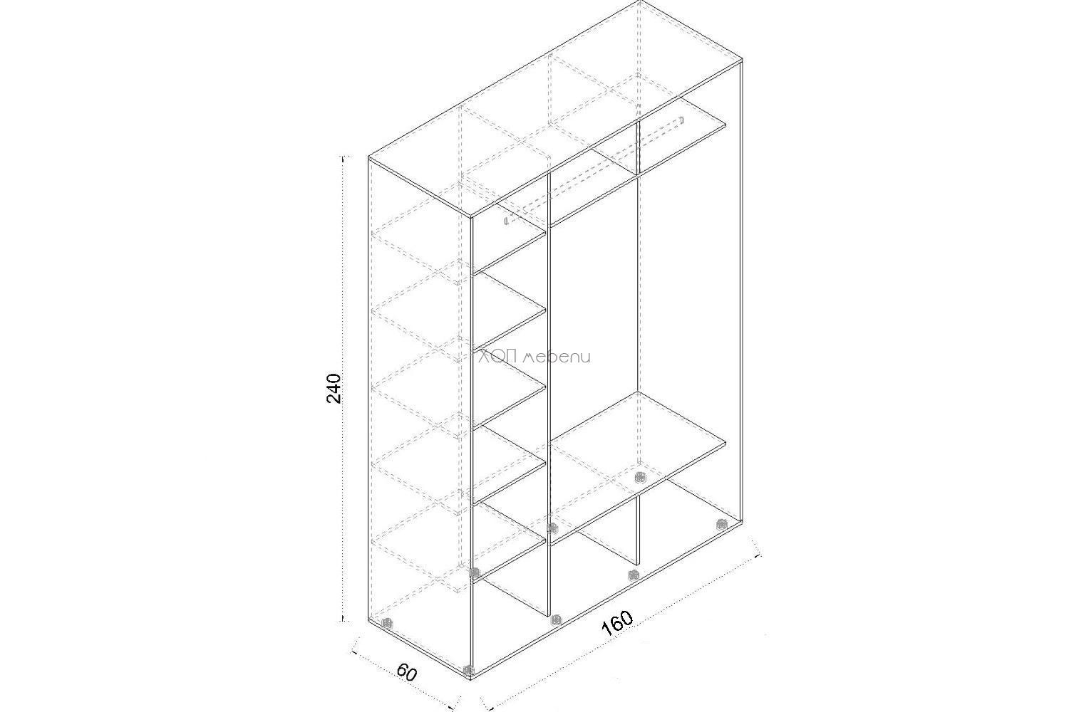 - височина 240 см / дълбочина 60 см / дължина 160 см