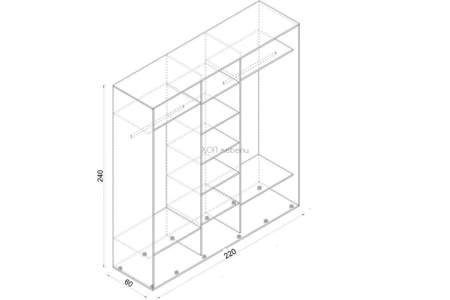 - височина 240 см / дълбочина 60 см / дължина 220 см