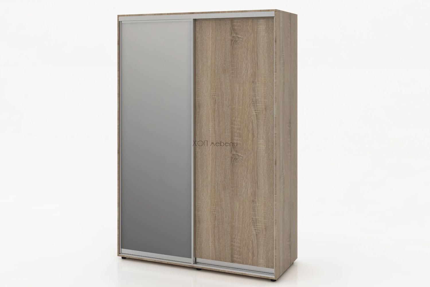 Тази конфигурация на гардероб Алфа е в цвят сонома с една плътна и една огледална врата.